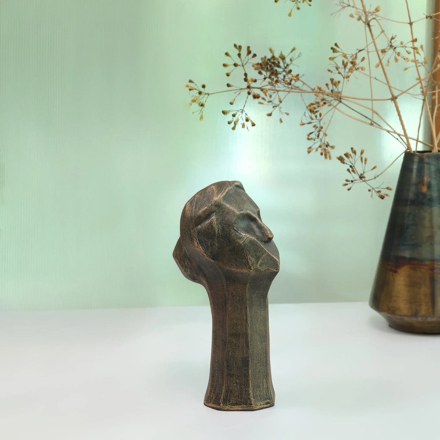Bring in your own personal taste and style and show off your bold, artistic side by including this abstract resin face sculpture. Casted out of high-quality resin in a classic silver pearl finish, this statue will elevate the look of your mantle, bookshelf, table, desk, and more. It’s the perfect finishing decorative accent piece for a modern, creative home or office.