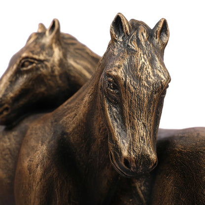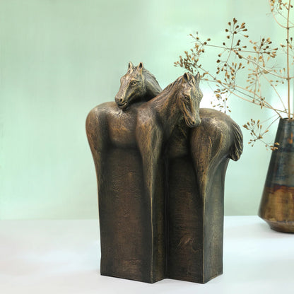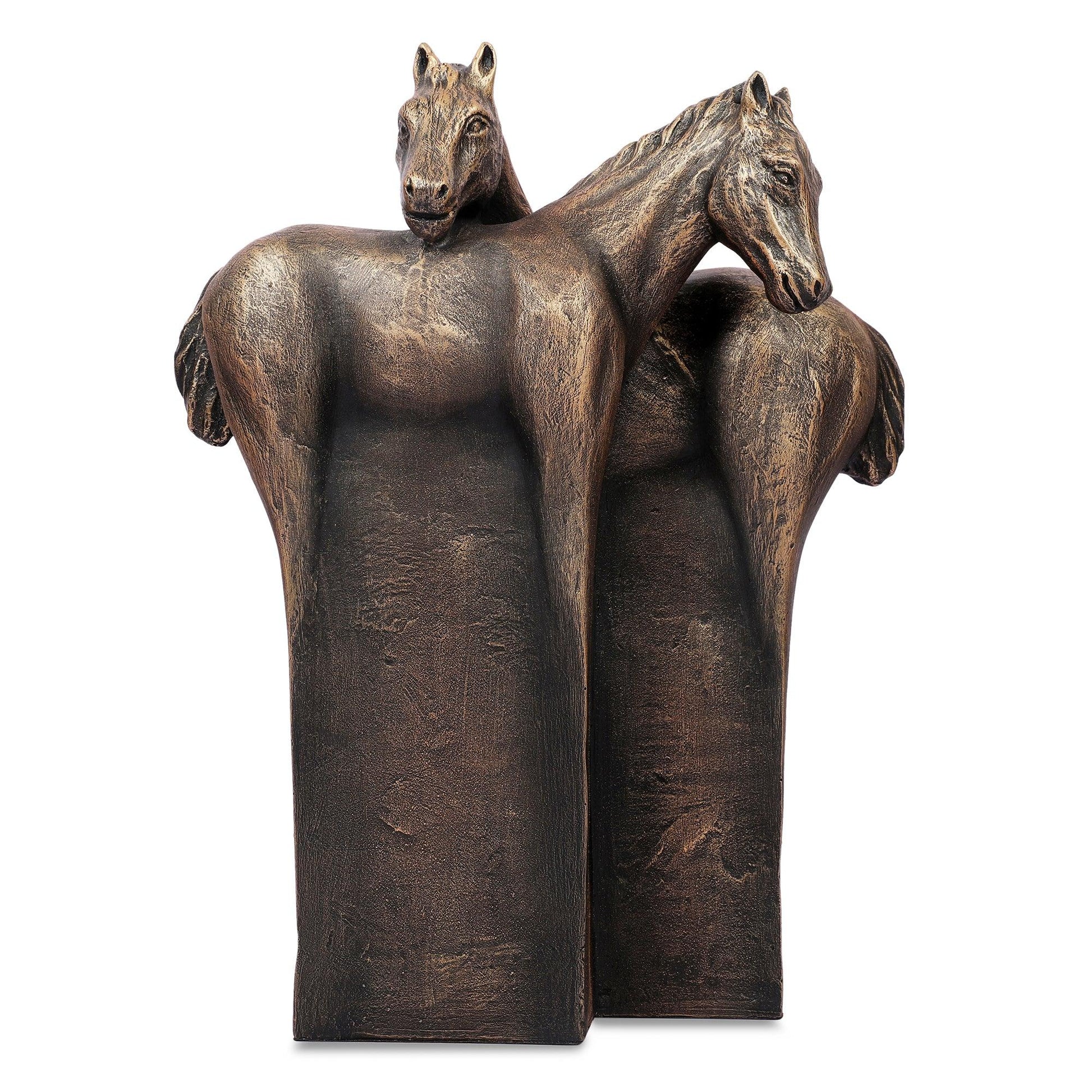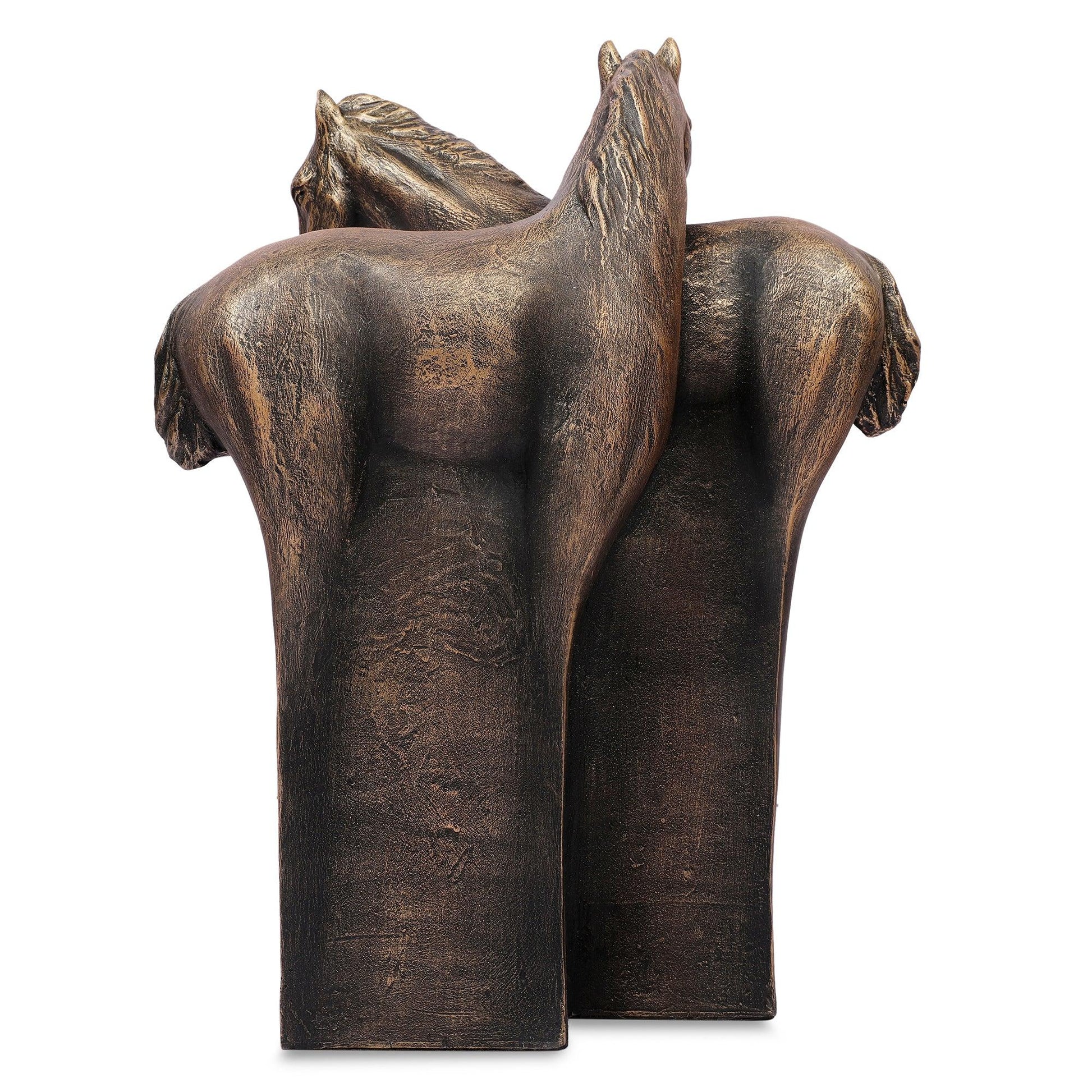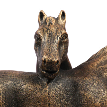 Embrace artistic expression with a style that is used as symbols of strength, power, and good luck! This horse sculpture is perfect for the living room, as it will add dimension as well as positivity to your interiors. Place this sculpture on a shelf on its own! This contemporary decorative sculpture with its modern design and antique gold finish will add a bold, dramatic extra touch to your home or office.