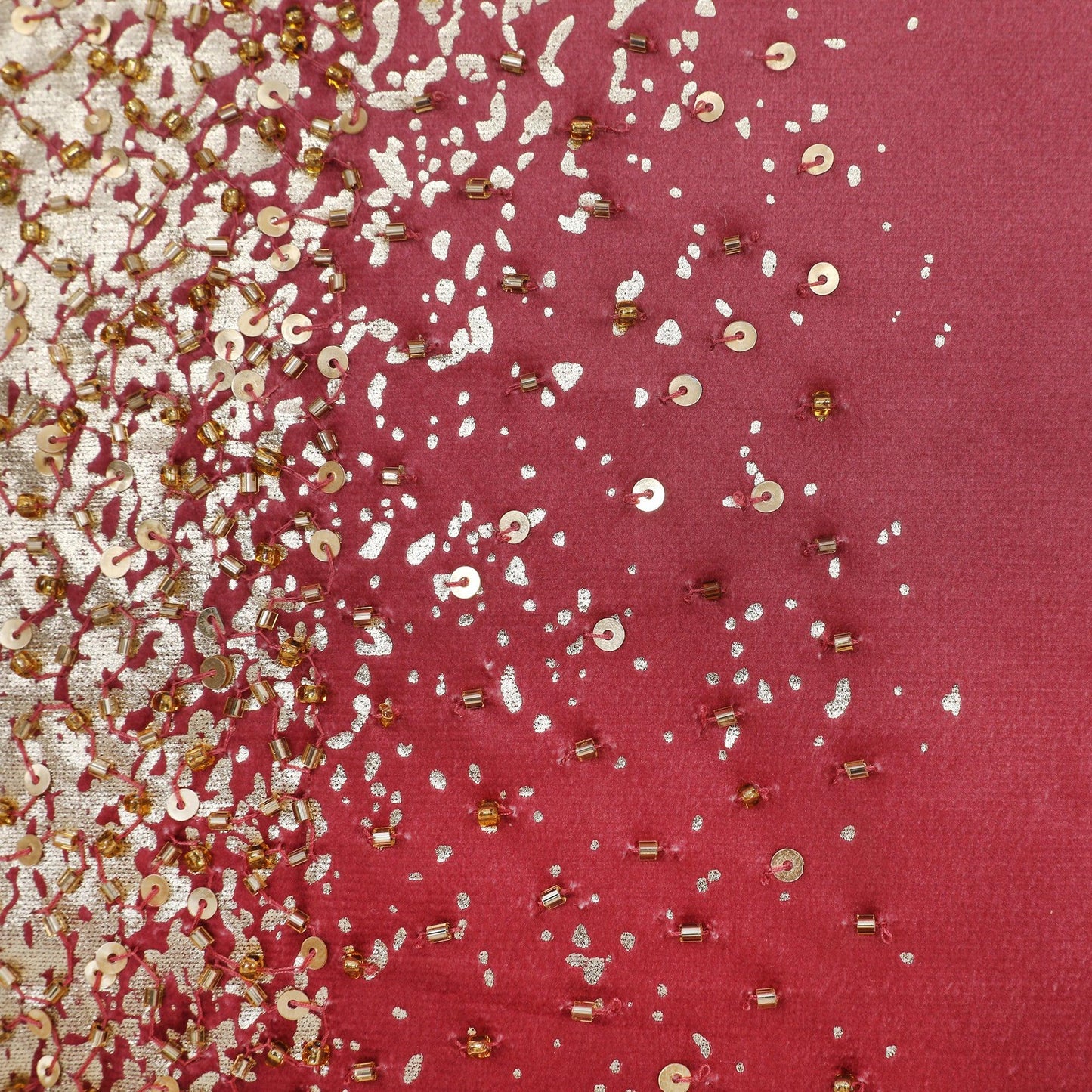 - Elevate your decor with our exquisite cushion covers adorned with computerized beaded embroidery work. Each cover is a masterpiece of precision and artistry, meticulously crafted to add a touch of glamour and sophistication to any space. The intricate beadwork creates a stunning visual texture, catching the light and adding depth to your furnishings. Whether placed on a sofa or armchair, these covers effortlessly infuse your home with elegance and luxury, making a statement that speaks volumes about your impeccable taste.