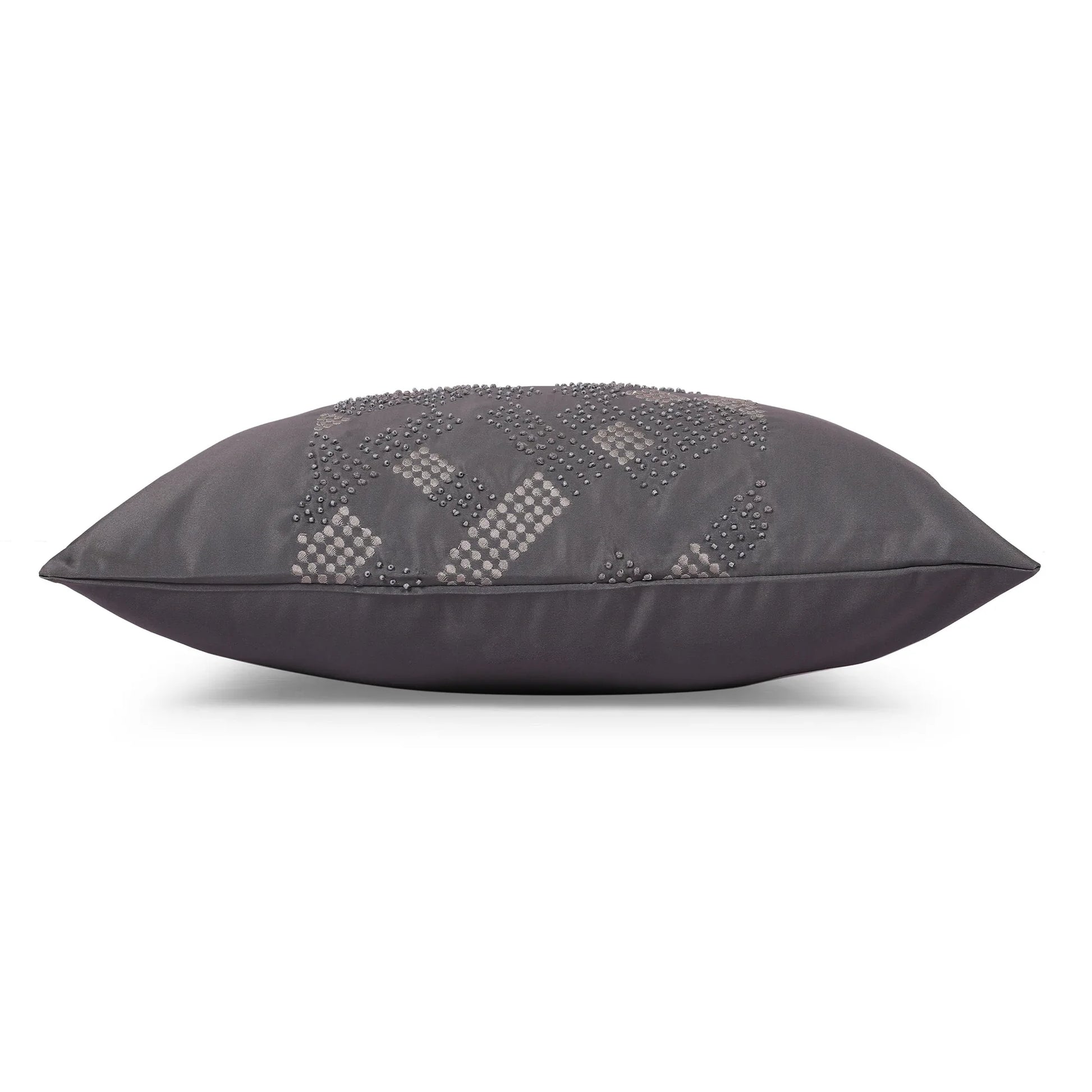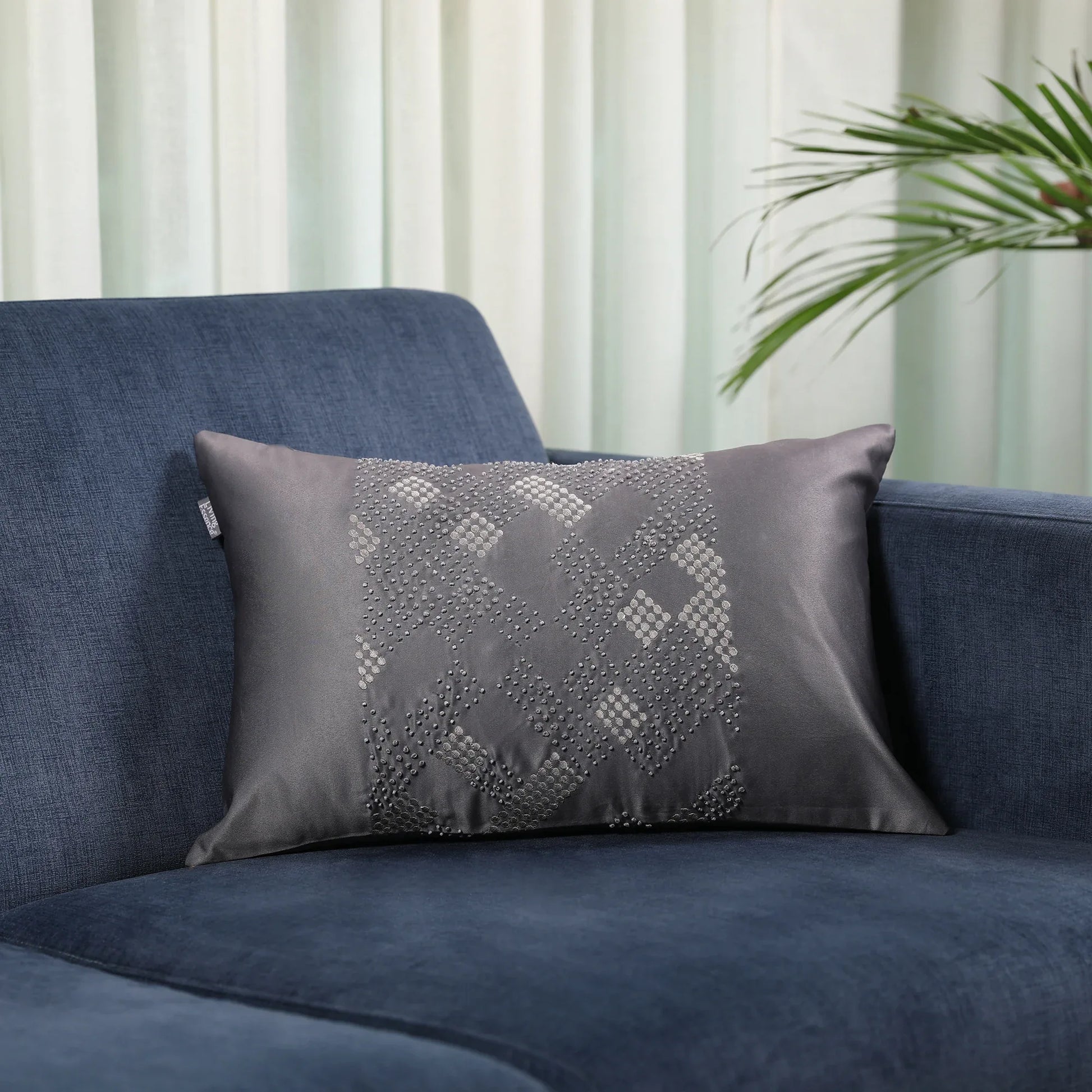 Elevate your decor with our exquisite cushion covers adorned with computerized beaded embroidery work. Each cover is a masterpiece of precision and artistry, meticulously crafted to add a touch of glamour and sophistication to any space. The intricate beadwork creates a stunning visual texture, catching the light and adding depth to your furnishings. Whether placed on a sofa, or armchair, these covers effortlessly infuse your home with elegance and luxury, making a statement that speaks volumes about your impeccable taste.