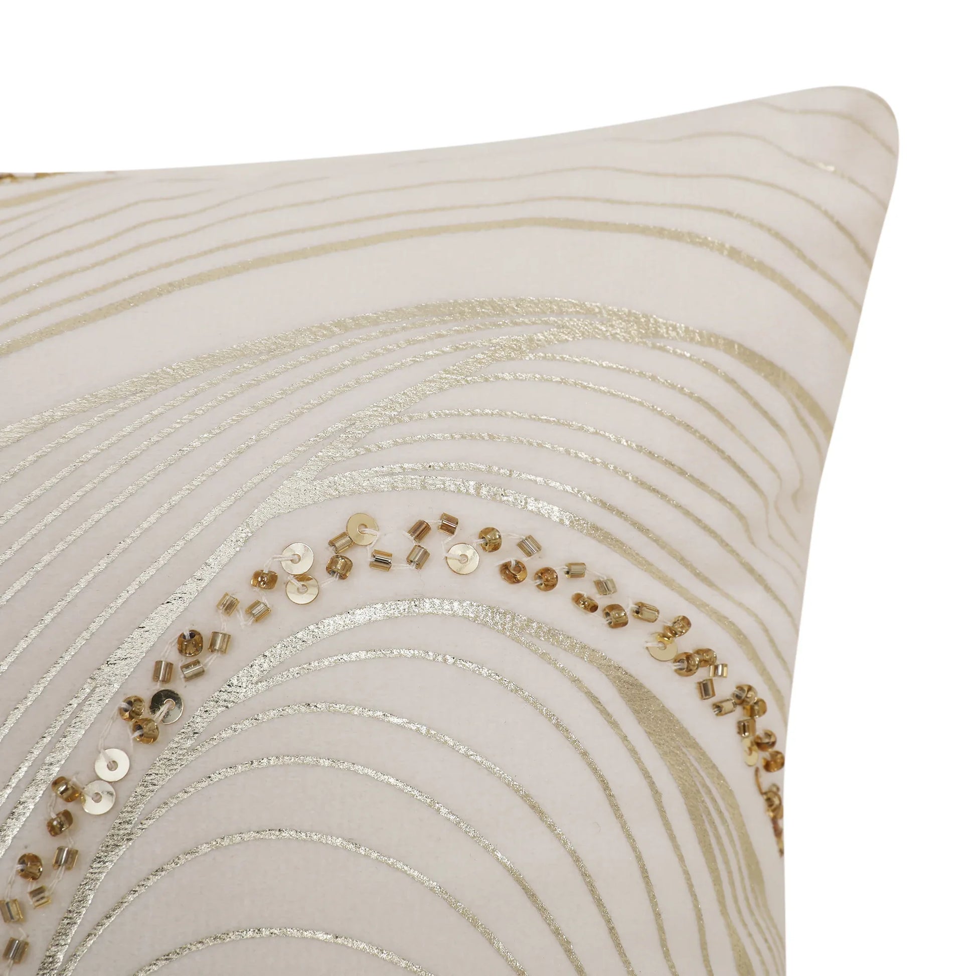 - Elevate your decor with our exquisite cushion covers adorned with computerized beaded embroidery work. Each cover is a masterpiece of precision and artistry, meticulously crafted to add a touch of glamour and sophistication to any space. The intricate beadwork creates a stunning visual texture, catching the light and adding depth to your furnishings. Whether placed on a sofa or armchair, these covers effortlessly infuse your home with elegance and luxury, making a statement that speaks volumes about your impeccable taste.