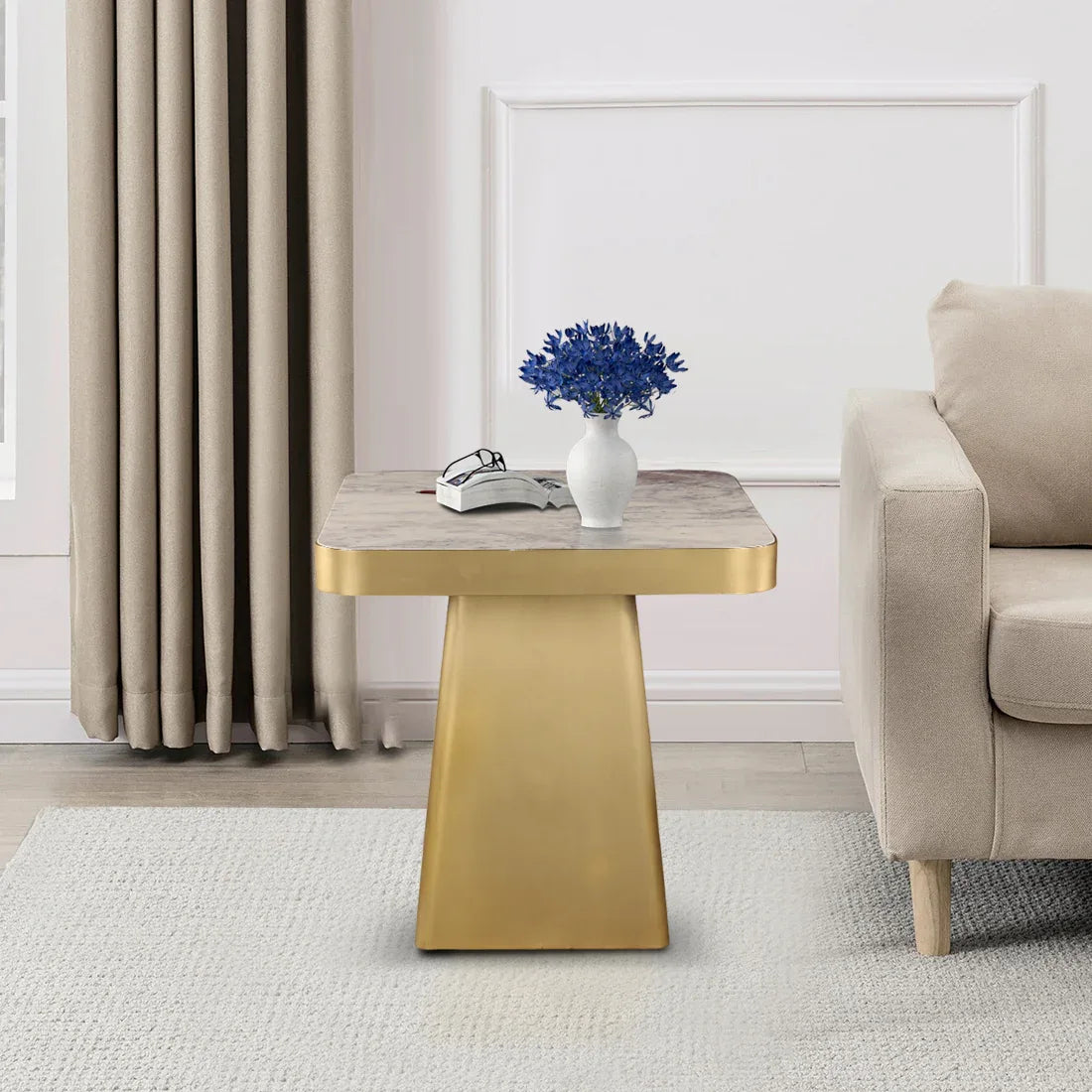 - Available in a combination of white marble, Walnut wood finish and gold metal finish