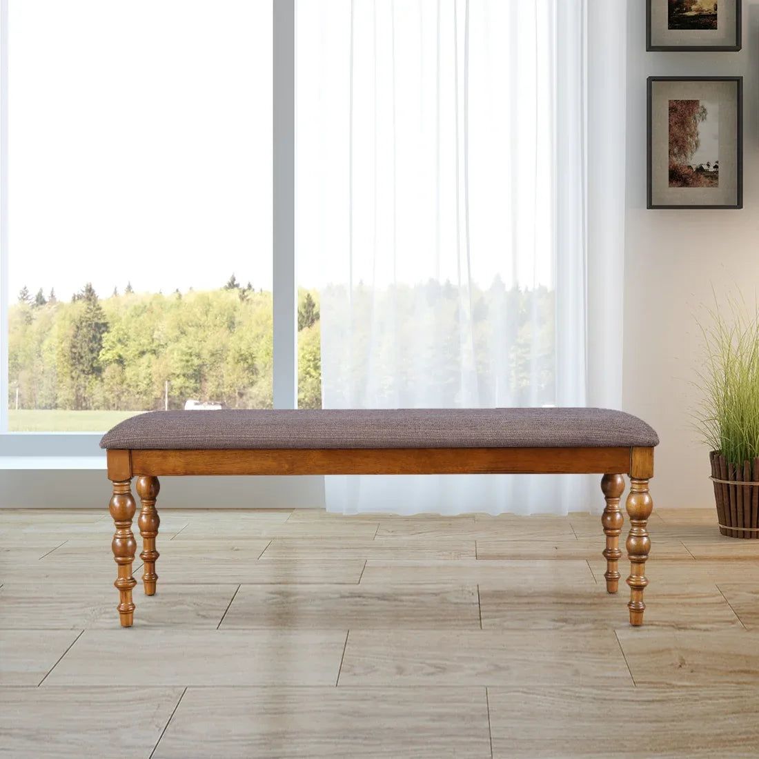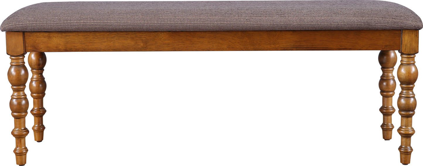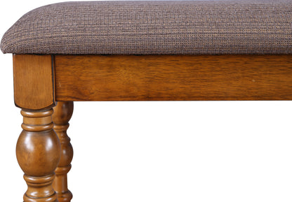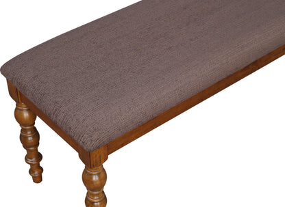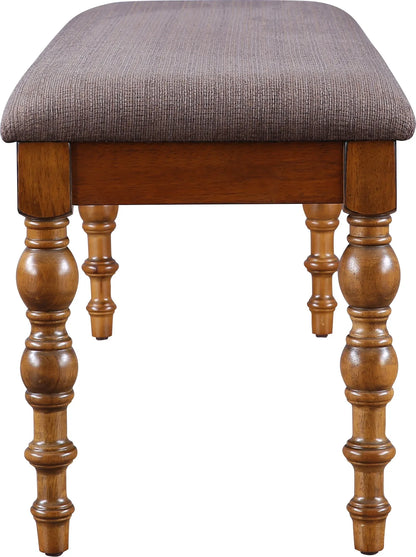 - Bench is made in thick rubber wood. Has turn leg design for Transitional look. It comes with soft padding and plush upholstery that imparts a high-end look.