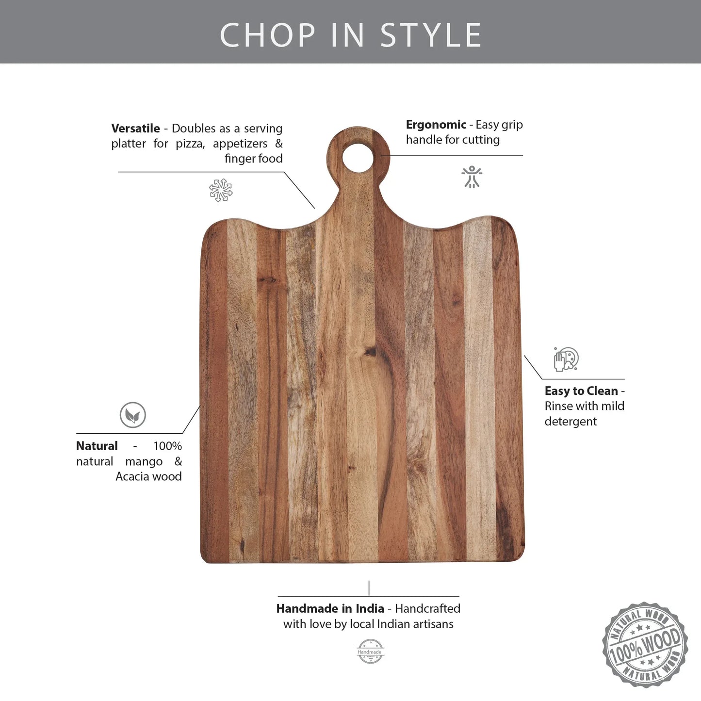 - Nothing lends inspiration in the kitchen like our range of Tuscany chopping boards. Handmade with 100 natural Indian oak & Acacia wood, these products can be used as serving platters, cheese-butter boards or even just as aesthetic bases for your food photos. The natural wood lends its antibacterial properties to the chopping board for healthier cooking & the robust build ensures that this product serves you for a long time to come.