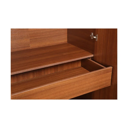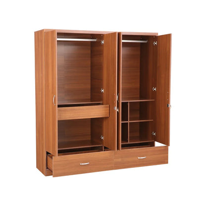 The engineered wood, Ultima four door wardrobe with mirror in natural wood grain finish is a classic. External bottom drawers are provided for footwear. Its ergonomic fittings makes the design user-centric.