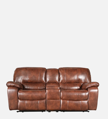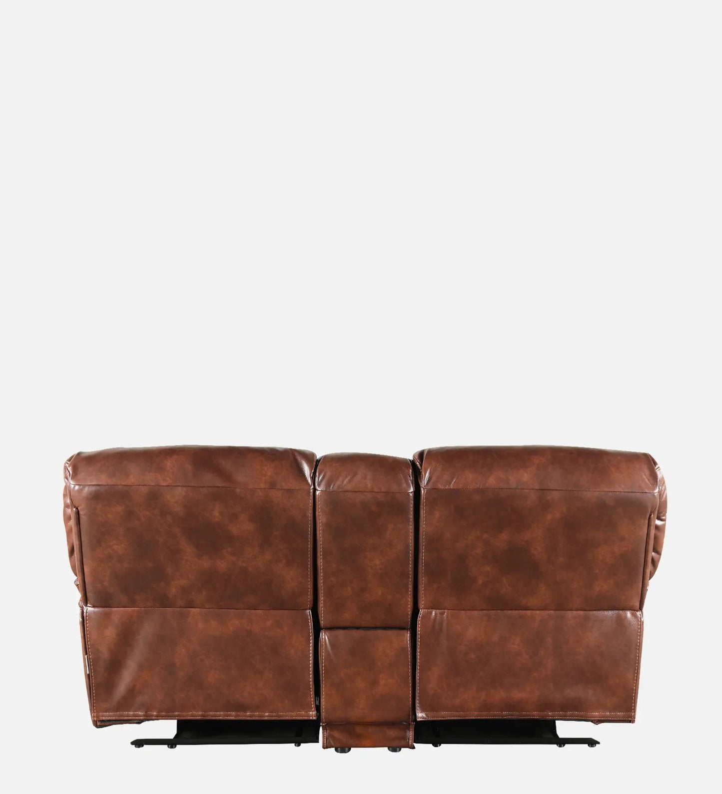 Urbano Leather Fabric Two Seater Recliner with Console in Brown Colour