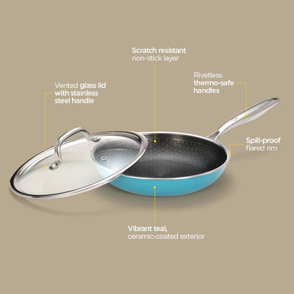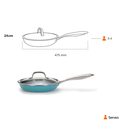 Vida Triply Frypan 24cm Teal with Glass Lid