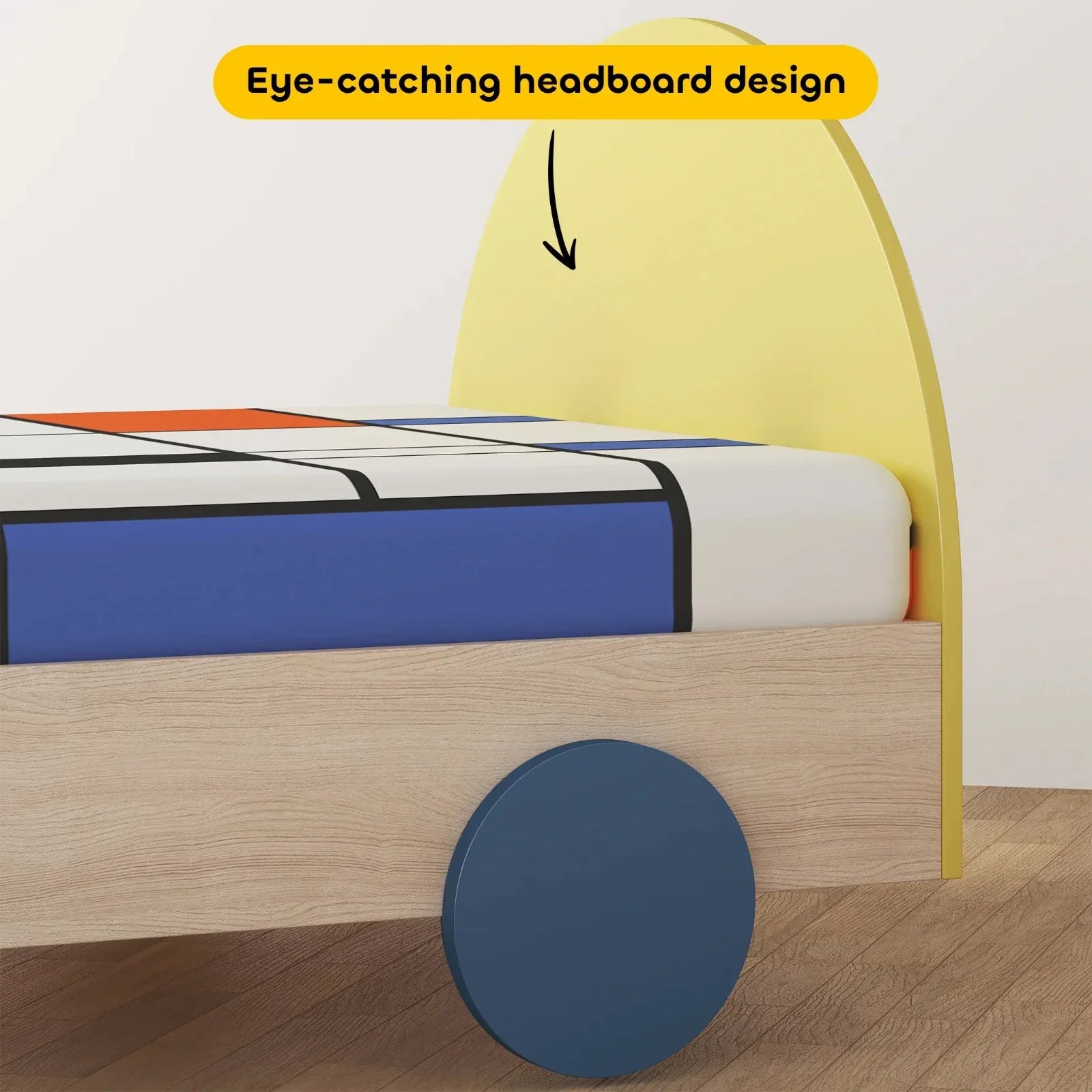 Made with engineered wood in water-resistant colour and chestnut finishes, kid-safe soft finish edges, and zero VOC paints; As well as easy to clean with a wet cloth and termite-resistant - the Vroom Bed is built to last. The Stargazer bed is ideal for children of all ages