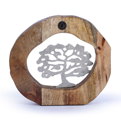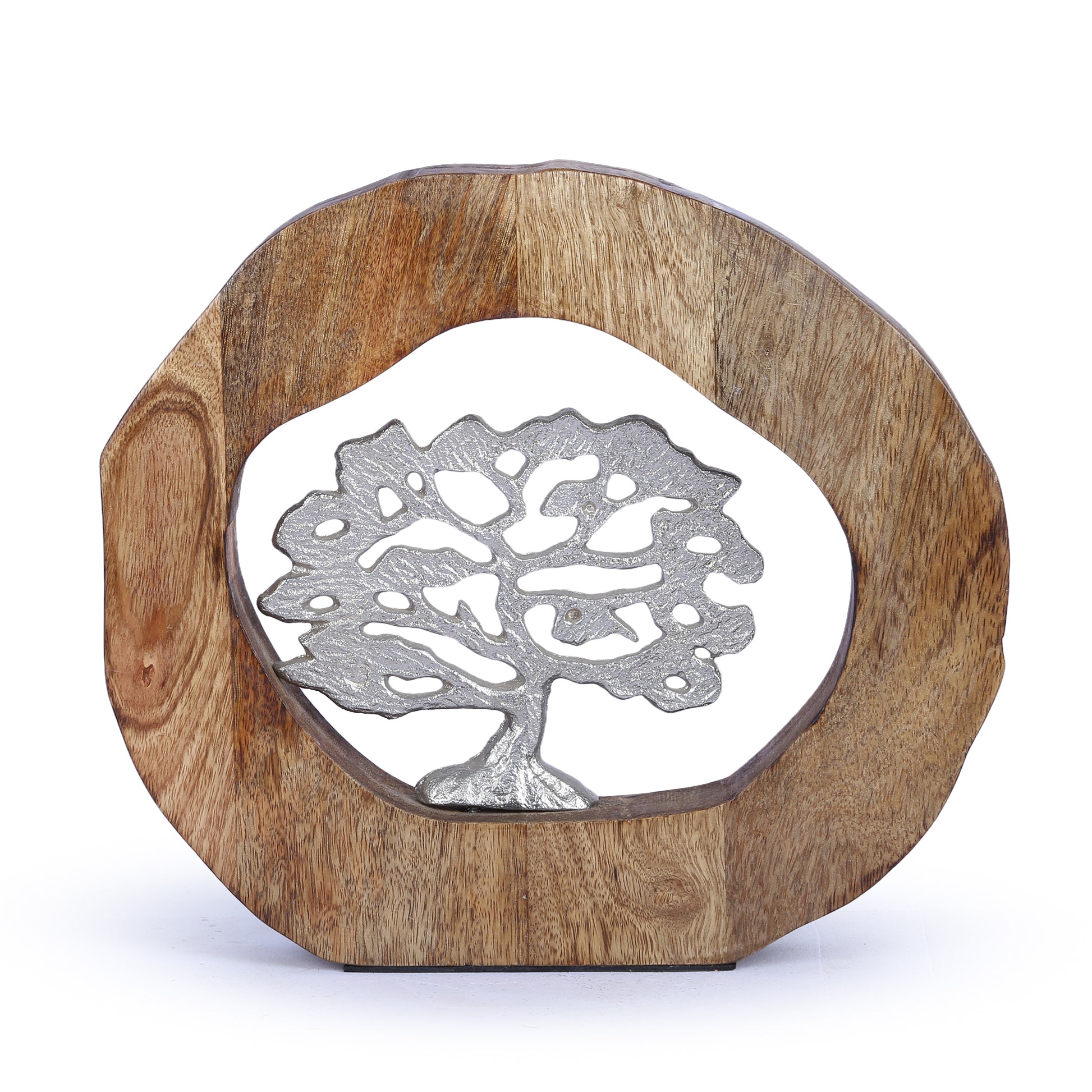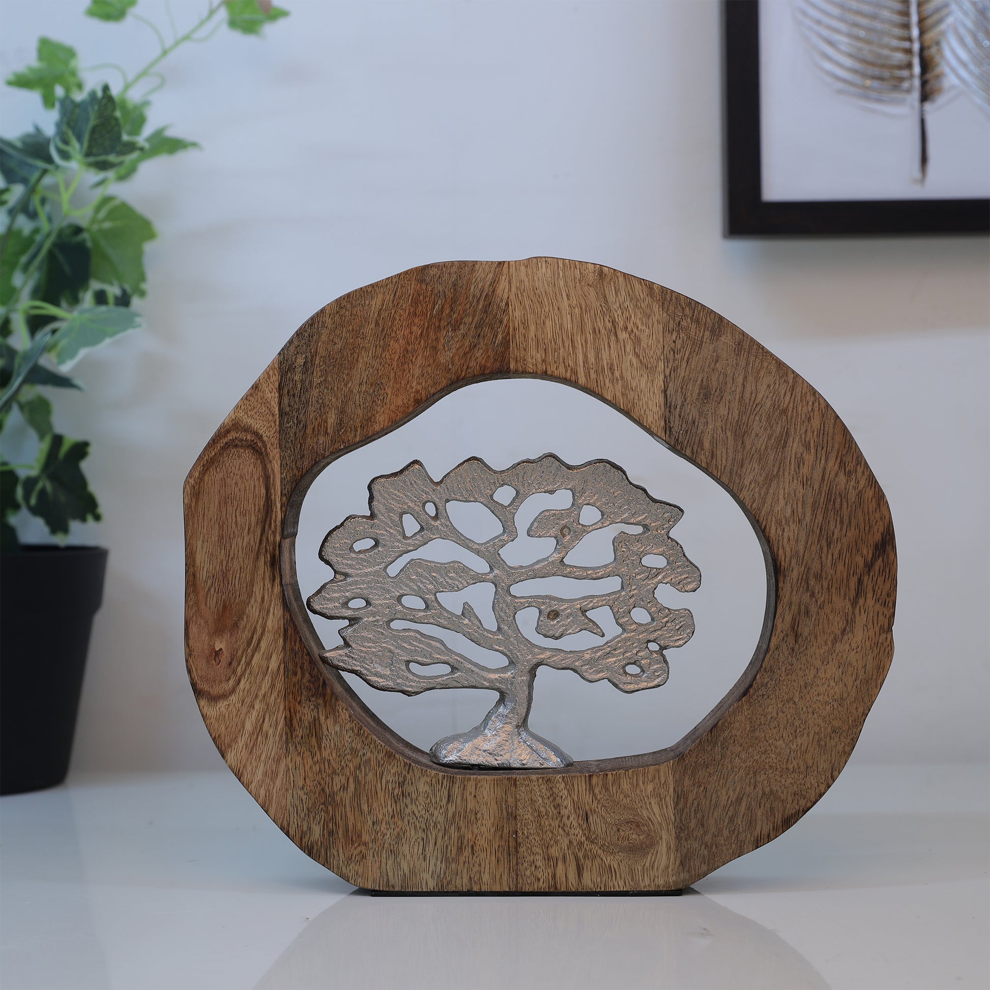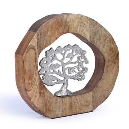 Walton Wood Metal Tree And Wood Decor in Natural Wood And Gold Colour