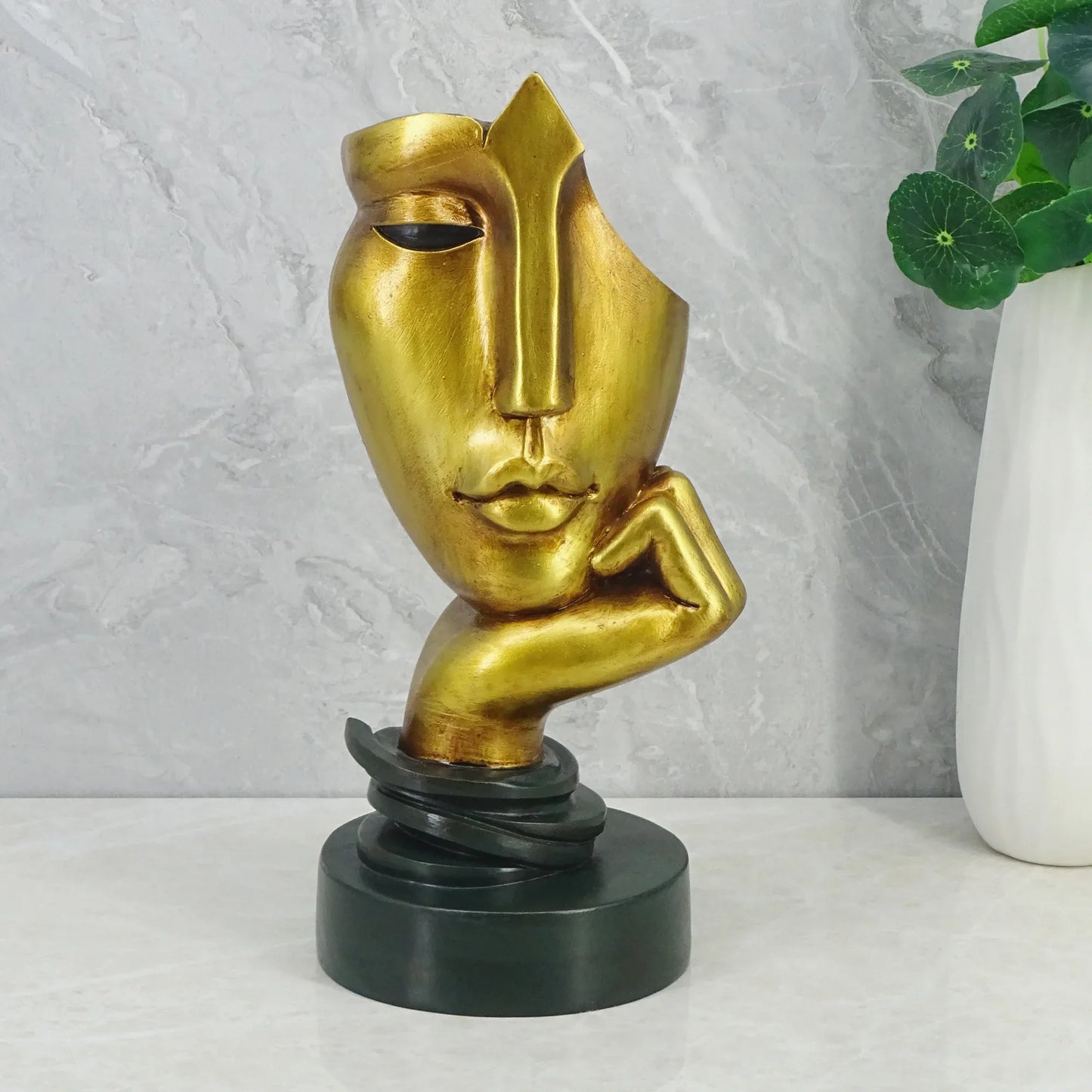 Willow Polyresin Lady Face Posing 30Cm in Black And Gold Colour