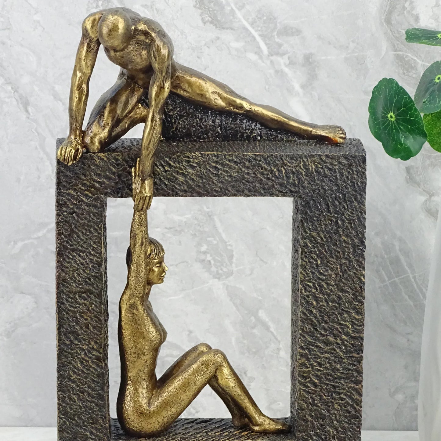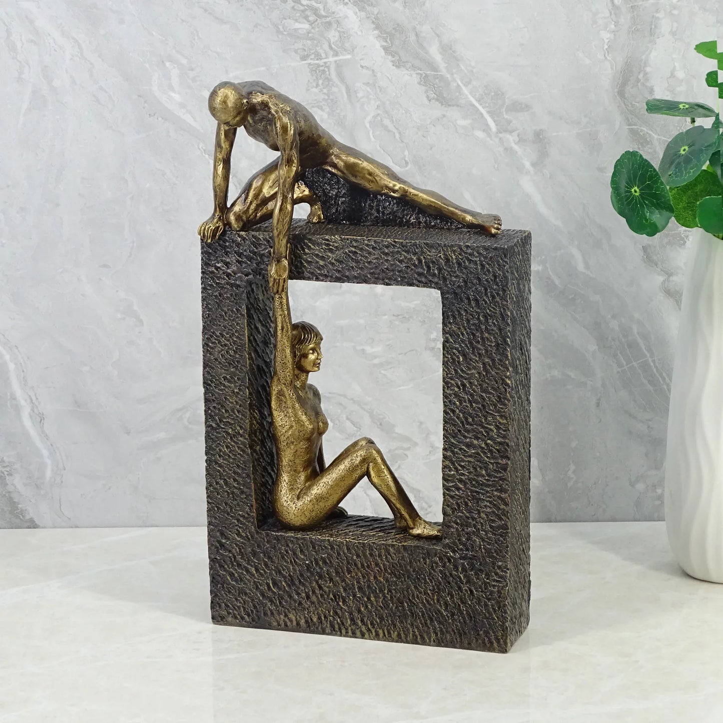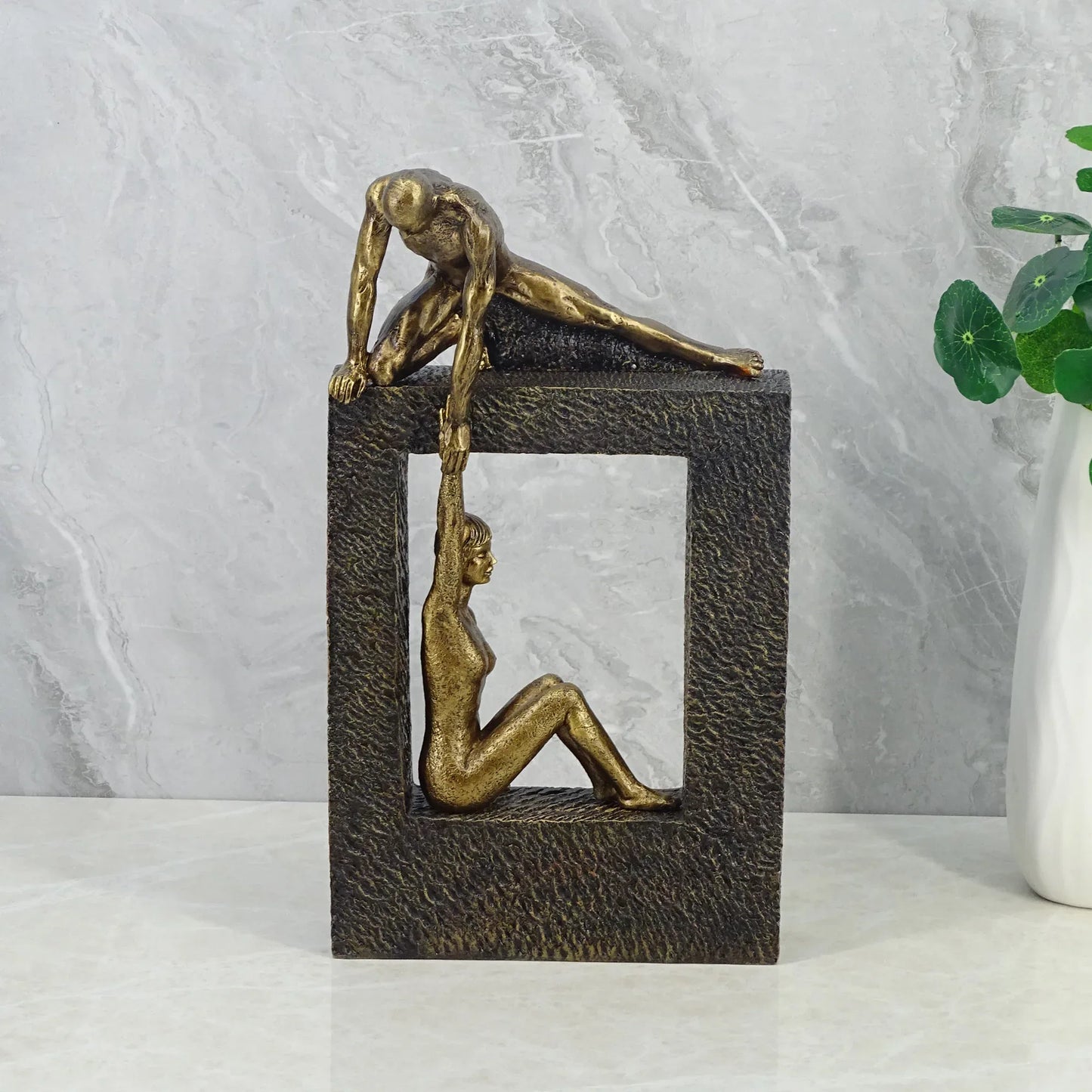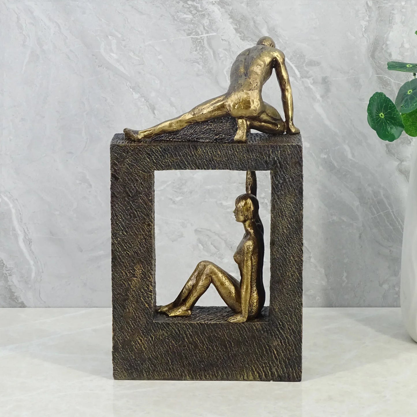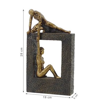 Willow Polyresin Man Holdng Sitting Woman 28 Cm in Brown And Gold Colour