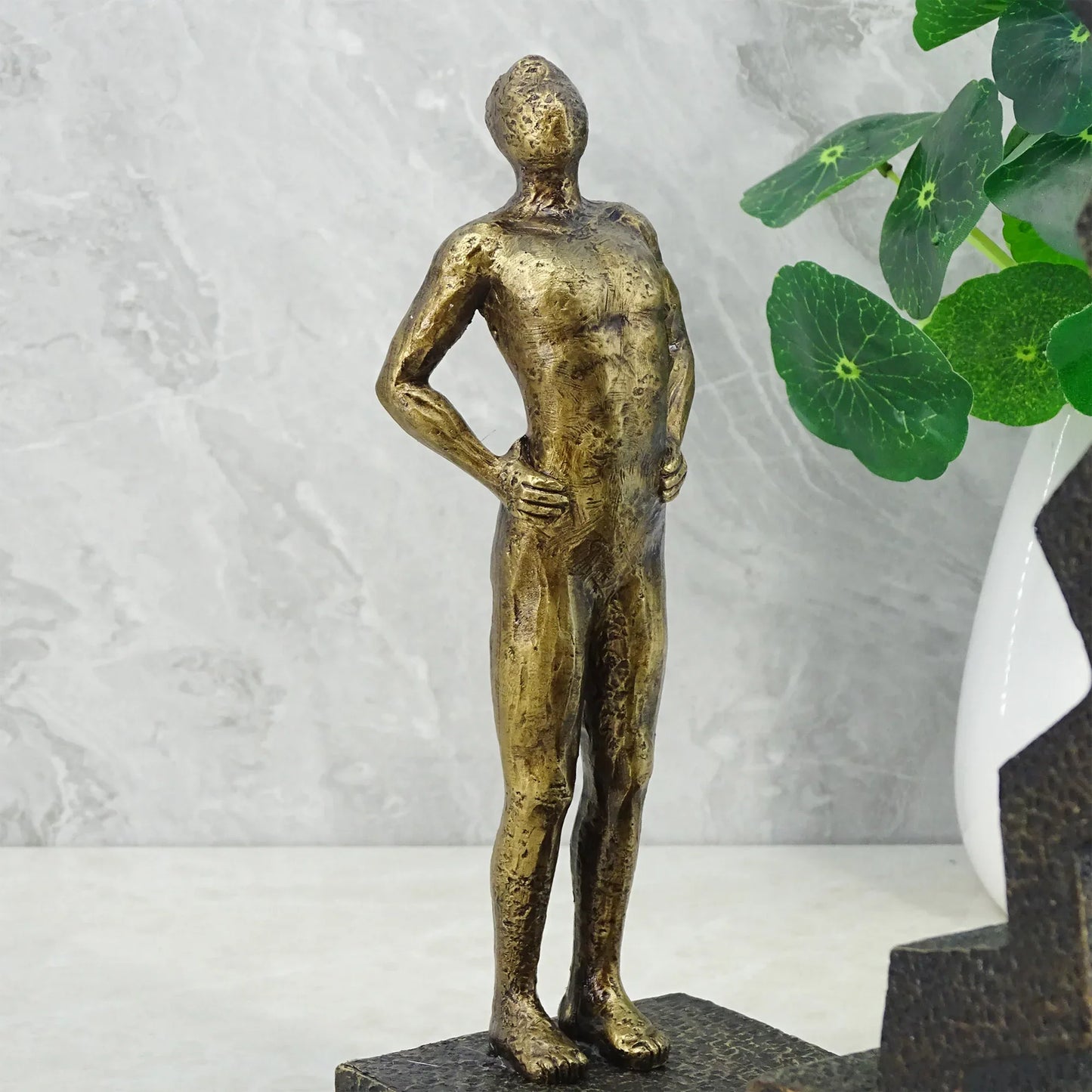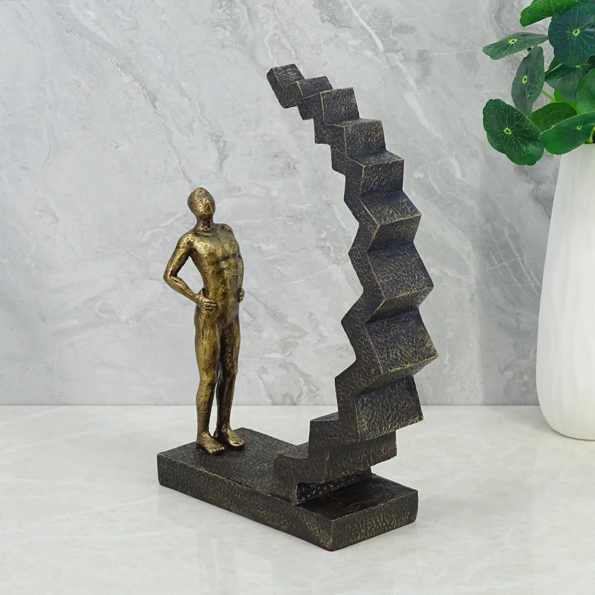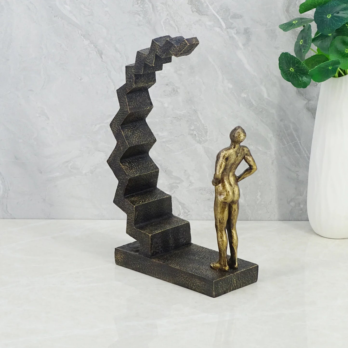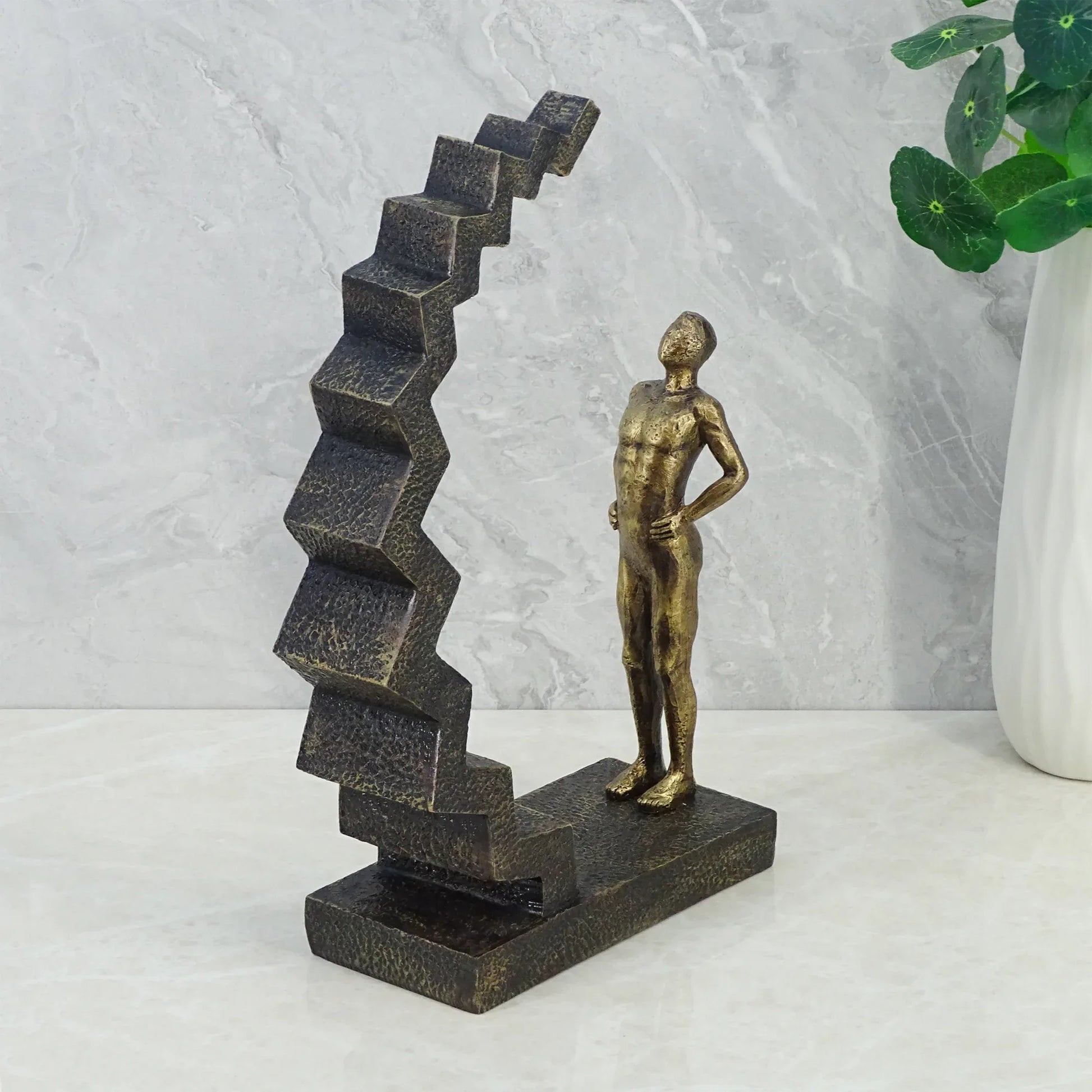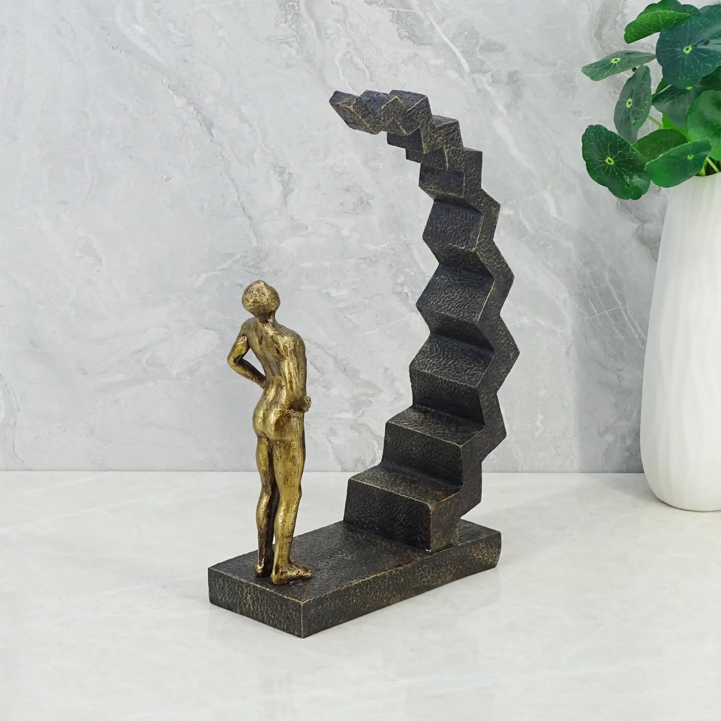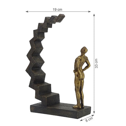 Willow Polyresin Man On Staircase 33 Cm in Brown And Gold Colour