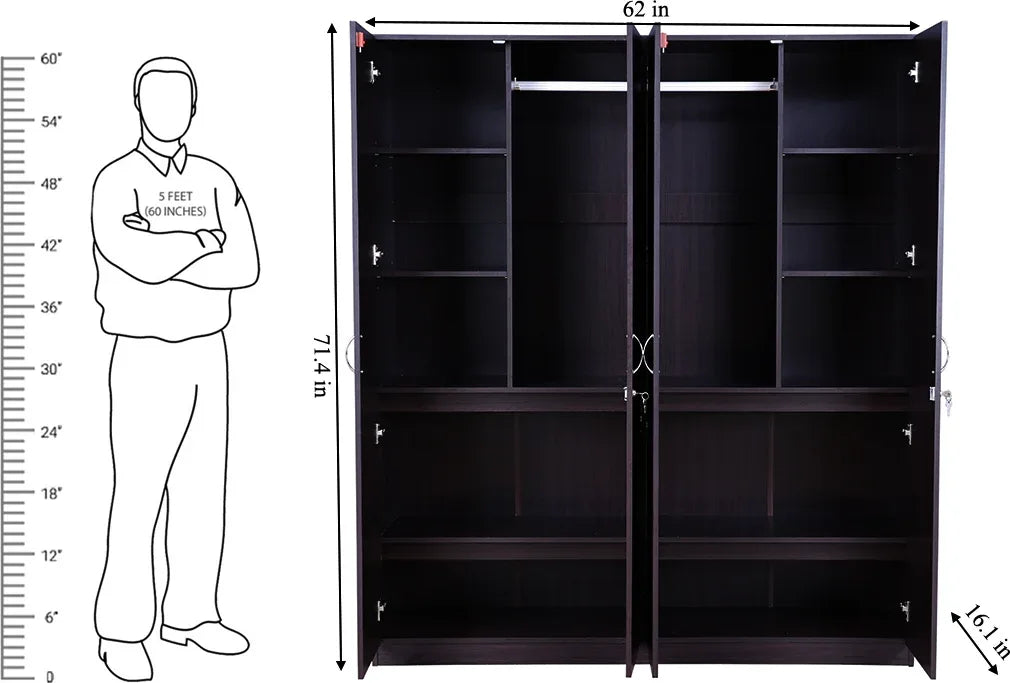 Willy Engineered Wood 4 door wardrobe in Walnut Colour