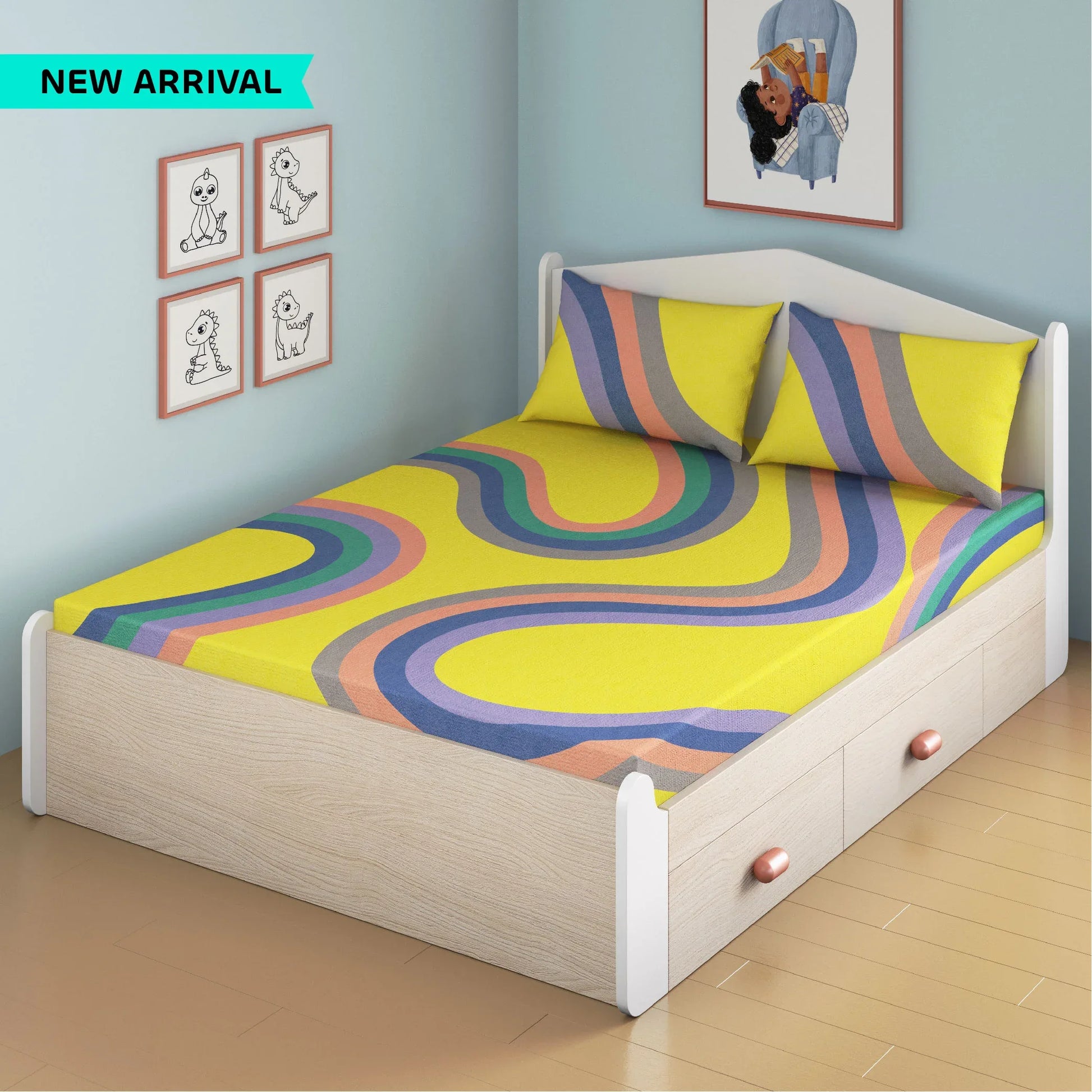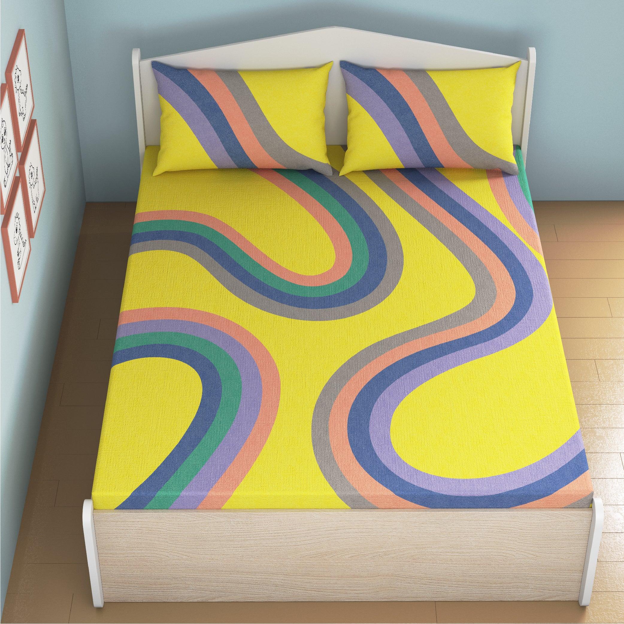 Winding Roads Bamboo Cotton Queen Fitted Bedsheet in Yellow Colour
