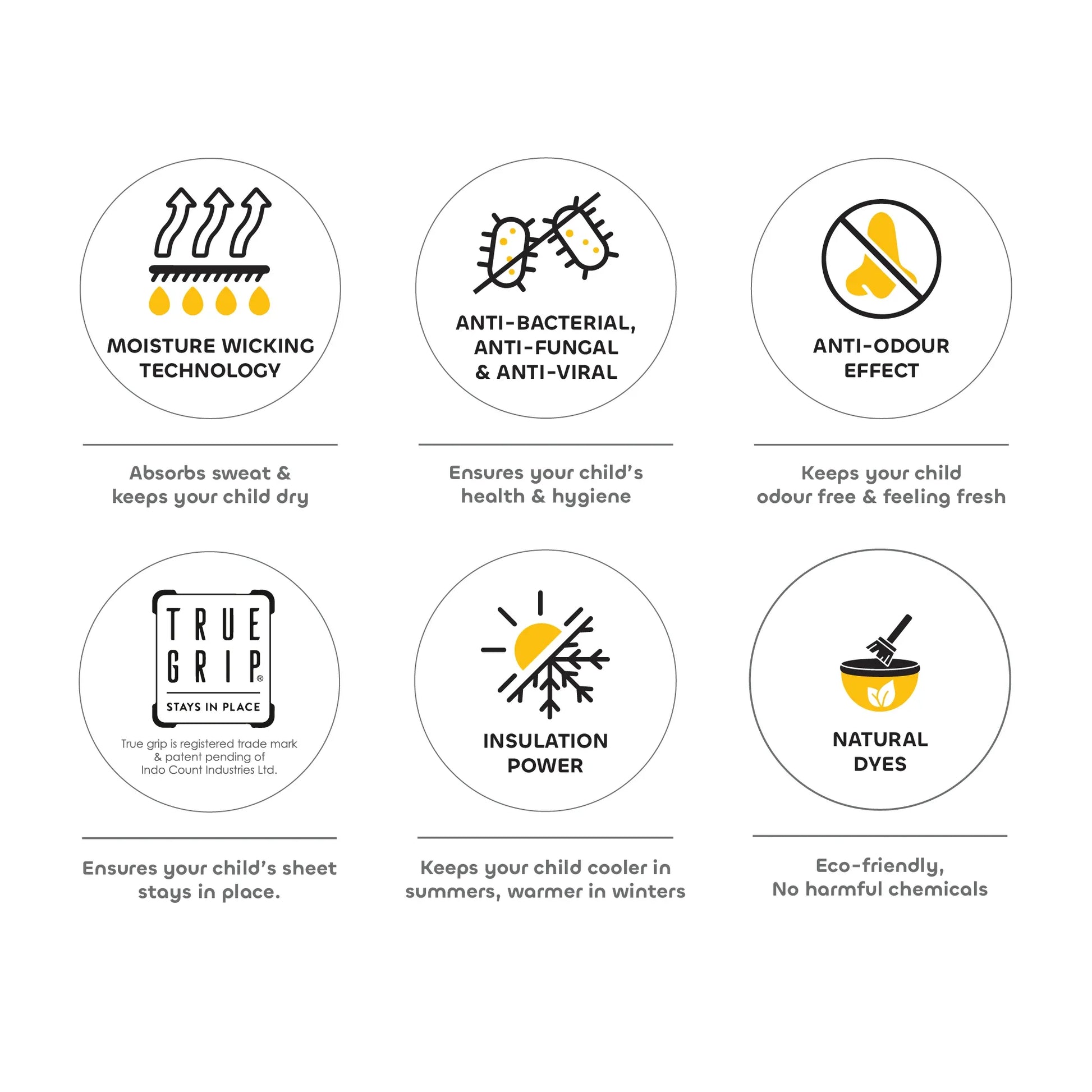 - Bright colors and a meandering design theme help stimulate the day-dreaming tendencies that are such an important part of a creative and curious childhood. Thoughtful designs that spark childrens desire to learn and create Fitted sheets that kids can tuck-in themselves, building self-sufficiency. Ultra-soft 100 Bamboo Cotton for maximum comfort and safety.