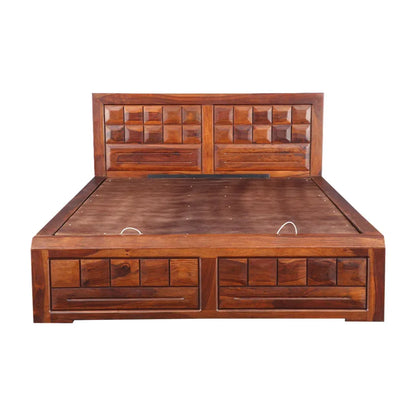 Woodrow Sheesham Wood(Rosewood) King bed with Hydraulic storage in Honey Colour