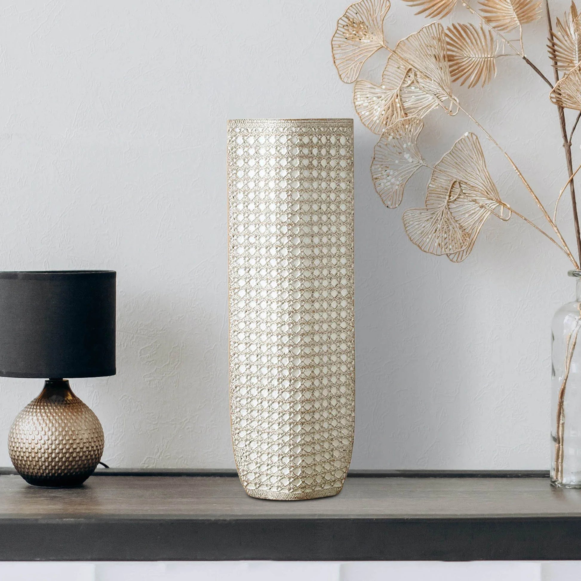 Zenith Polyresin Tumblr Macrame Vase 58Cm in White Colour