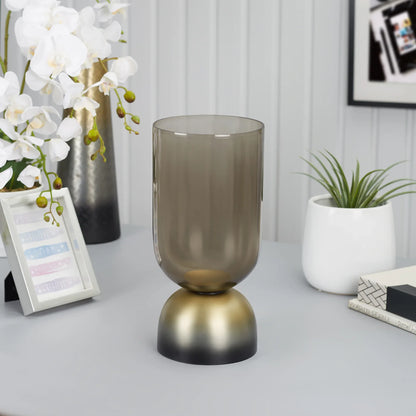 Zeus Iron and Glass Ombre Chimney Hurricane 17x35 Cm in Antique Gold & Black Colour