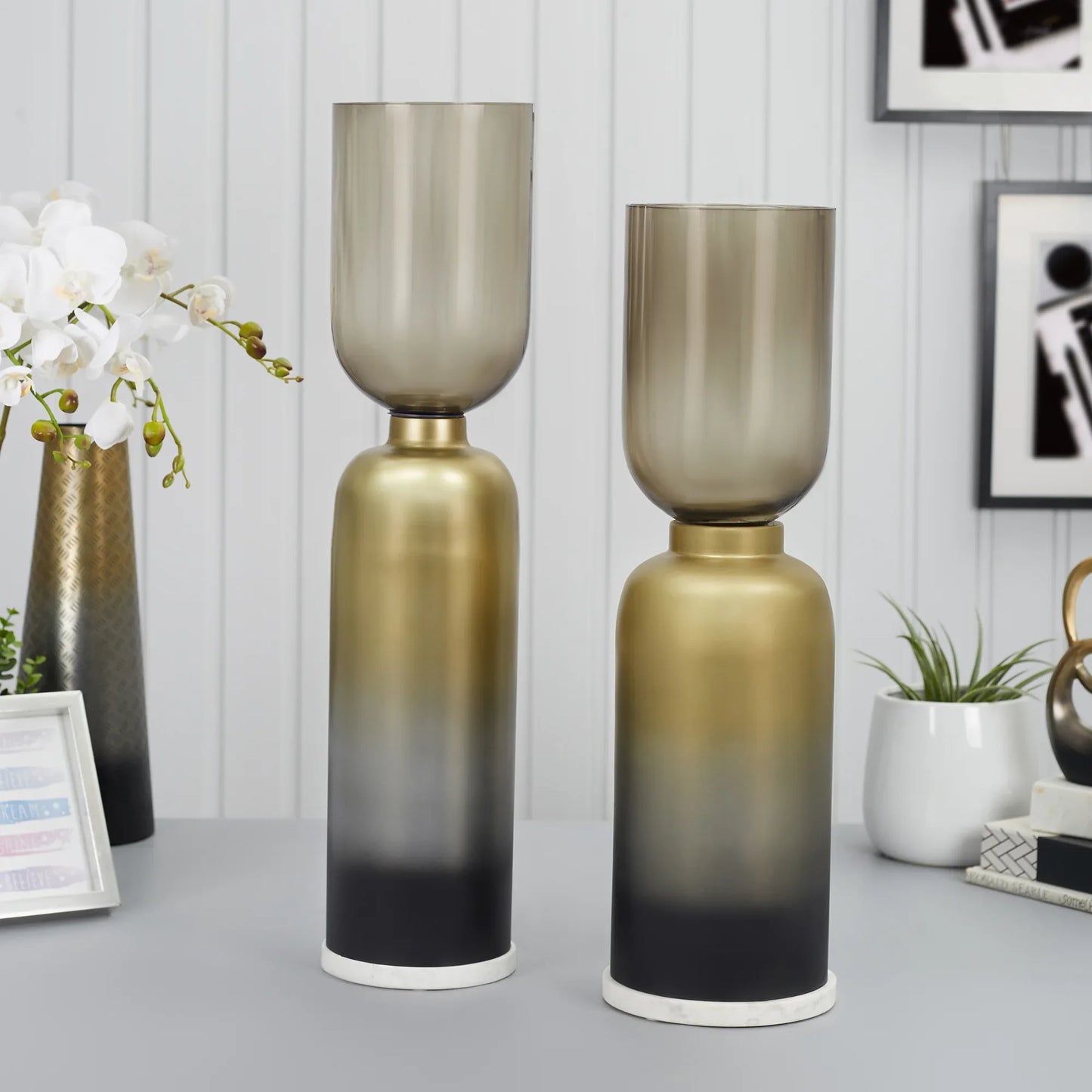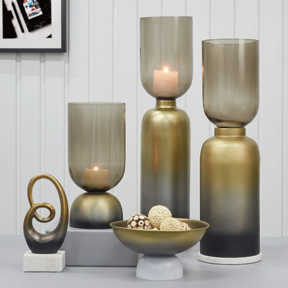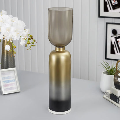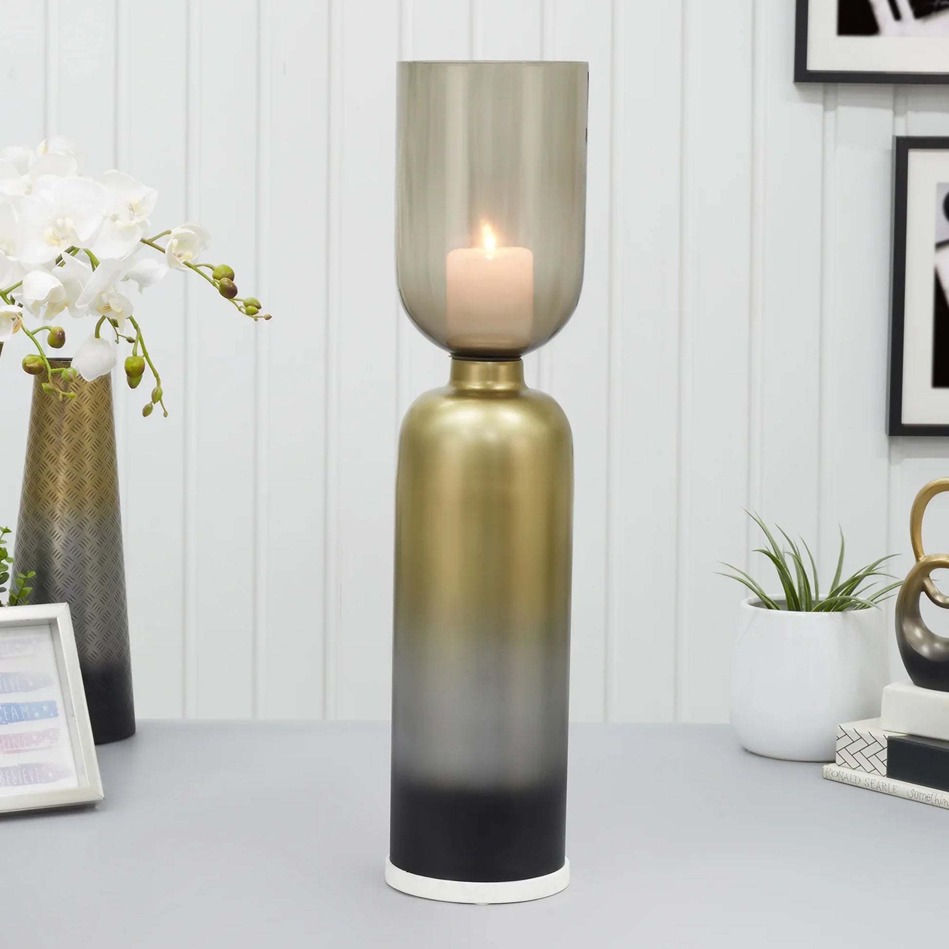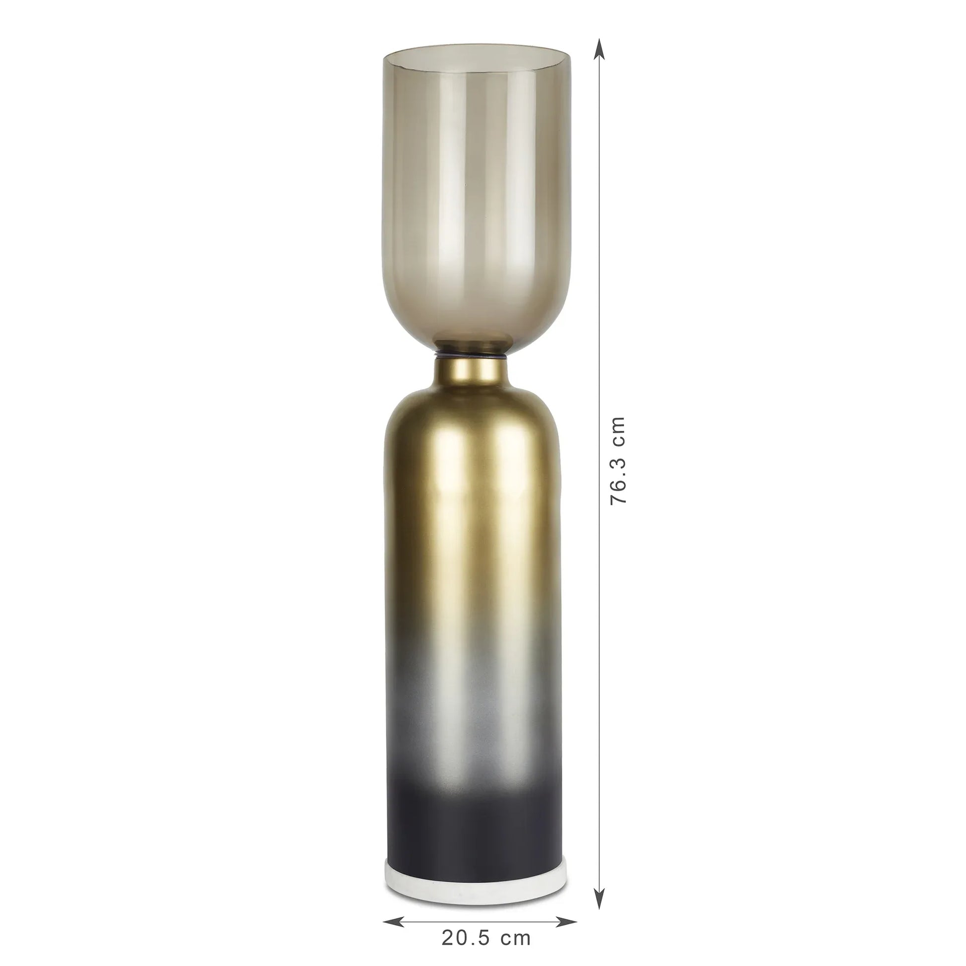 Zeus Iron and Glass Ombre Floor Hurricane 20x76 Cm in Antique Gold & Black Colour